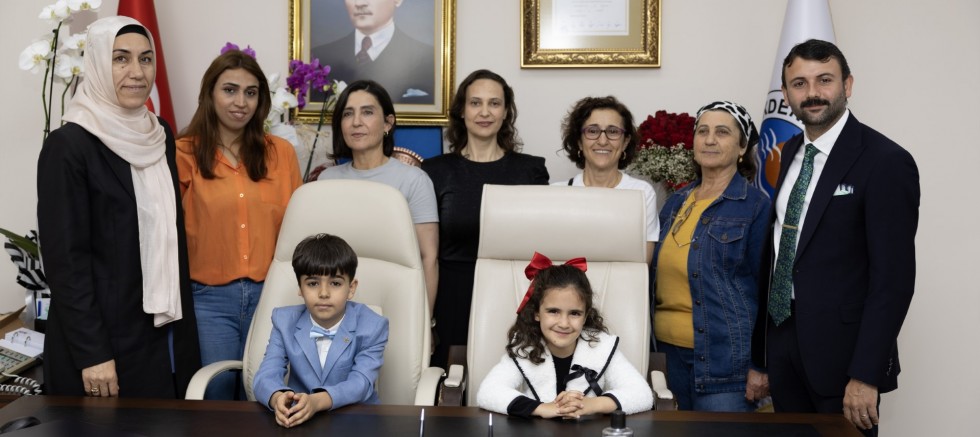 Akdeniz Belediyesi Eş Başkanları Hoşyar Sarıyıldız ve Nuriye Arslan, “23 Nisan Ulusal Egemenlik ve Çocuk Bayramı” dolayısıyla koltuklarını Devrim Geriş ile Tuna Akdoğan adlı çocuklara devretti. Başkanlık makamına oturan çocukların ilk talimatı, mahallelerine kütüphane yapılması ve geri dönüşüm kutularının sayısının arttırılması oldu.