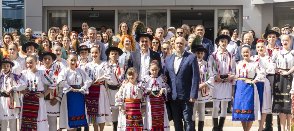 Mersin Büyükşehir Belediyesi’nin 23 Nisan Ulusal Egemenlik ve Çocuk Bayramı dolayısıyla bu yıl ilkini gerçekleştirdiği ‘Uluslararası Çocuk Festivali’ tüm coşkusuyla Mersin’i sarmaya devam ediyor. Kentin dört bir yanında festival dolayısıyla etkinlikler sürmeye devam ederken, festival kapsamında Mersin’e gelen ülkelerden olan Romanya Halk Dansları Topluluğu da; Mersin Büyükşehir Belediye Başkanı Vahap Seçer’e sürpriz bir gösteri gerçekleştirdi.