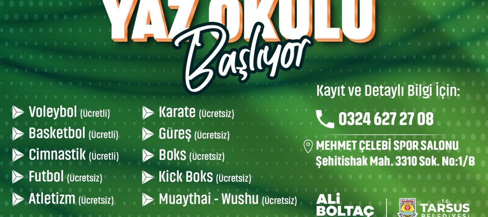 Çocukların spor yapmasını sağlamak, spor bilincini aşılamak ve yaz tatillerini verimli geçirmelerini sağlamak amacıyla Tarsus Belediyesi tarafından “Yaz Okulu” kursları başladı.