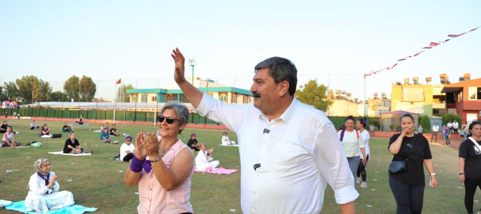 Uzman eğitmen Özge Zehni Önkol eşliğinde nefes egzersizi ve yoga çalışmaları yapan kadınları Toroslar Belediye Başkanı Abdurrahman Yıldız da yalnız bırakmadı.